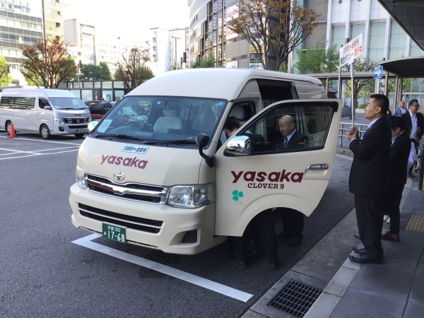 (一社)京都府タクシー協会が実施し、彌榮自動車も参加している「京都駅烏丸口から金閣寺行きの乗合タクシー実証実験」について、11月3日に本格稼働を開始したことを記念して、京都駅烏丸口にて出発式が行われました。
