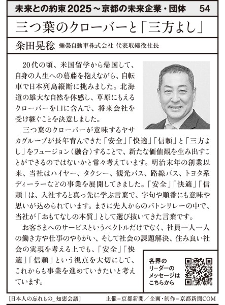 2025年10月16日付 京都新聞朝刊「日本人の忘れもの 知恵会議『未来との約束 2025』」に彌榮自動車株式会社 代表取締役社長 粂田晃稔の寄稿が掲載されました。